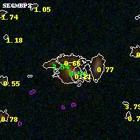 Black segments are analyzed here. Roll mouse over color images to view segments. Best viewed in a wide browser window (1200 pixels or more). Download SED & P(z) plots to view larger versions.
