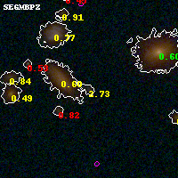 Black segments are analyzed here. Roll mouse over color images to view segments. Best viewed in a wide browser window (1200 pixels or more). Download SED & P(z) plots to view larger versions.