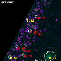 Black segments are analyzed here. Roll mouse over color images to view segments. Best viewed in a wide browser window (1200 pixels or more). Download SED & P(z) plots to view larger versions.
