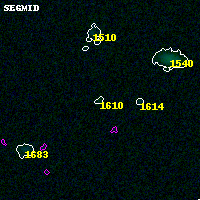 Black segments are analyzed here. Roll mouse over color images to view segments. Best viewed in a wide browser window (1200 pixels or more). Download SED & P(z) plots to view larger versions.