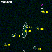 Black segments are analyzed here. Roll mouse over color images to view segments. Best viewed in a wide browser window (1200 pixels or more). Download SED & P(z) plots to view larger versions.