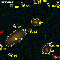 Black segments are analyzed here. Roll mouse over color images to view segments. Best viewed in a wide browser window (1200 pixels or more). Download SED & P(z) plots to view larger versions.