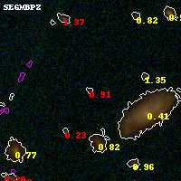 Black segments are analyzed here. Roll mouse over color images to view segments. Best viewed in a wide browser window (1200 pixels or more). Download SED & P(z) plots to view larger versions.