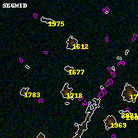 Black segments are analyzed here. Roll mouse over color images to view segments. Best viewed in a wide browser window (1200 pixels or more). Download SED & P(z) plots to view larger versions.