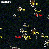 Black segments are analyzed here. Roll mouse over color images to view segments. Best viewed in a wide browser window (1200 pixels or more). Download SED & P(z) plots to view larger versions.