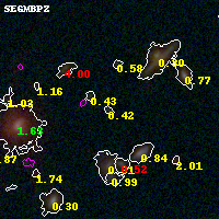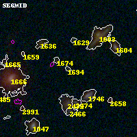 Black segments are analyzed here. Roll mouse over color images to view segments. Best viewed in a wide browser window (1200 pixels or more). Download SED & P(z) plots to view larger versions.