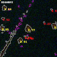 Black segments are analyzed here. Roll mouse over color images to view segments. Best viewed in a wide browser window (1200 pixels or more). Download SED & P(z) plots to view larger versions.