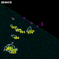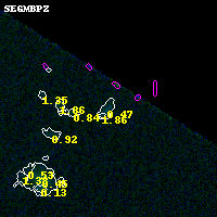 Black segments are analyzed here. Roll mouse over color images to view segments. Best viewed in a wide browser window (1200 pixels or more). Download SED & P(z) plots to view larger versions.