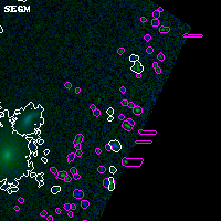 Black segments are analyzed here. Roll mouse over color images to view segments. Best viewed in a wide browser window (1200 pixels or more). Download SED & P(z) plots to view larger versions.