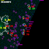 Black segments are analyzed here. Roll mouse over color images to view segments. Best viewed in a wide browser window (1200 pixels or more). Download SED & P(z) plots to view larger versions.