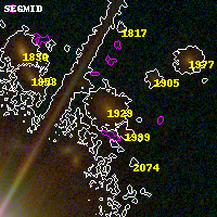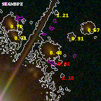 Black segments are analyzed here. Roll mouse over color images to view segments. Best viewed in a wide browser window (1200 pixels or more). Download SED & P(z) plots to view larger versions.