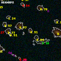 Black segments are analyzed here. Roll mouse over color images to view segments. Best viewed in a wide browser window (1200 pixels or more). Download SED & P(z) plots to view larger versions.