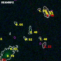 Black segments are analyzed here. Roll mouse over color images to view segments. Best viewed in a wide browser window (1200 pixels or more). Download SED & P(z) plots to view larger versions.