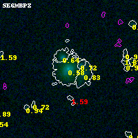 Black segments are analyzed here. Roll mouse over color images to view segments. Best viewed in a wide browser window (1200 pixels or more). Download SED & P(z) plots to view larger versions.