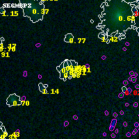 Black segments are analyzed here. Roll mouse over color images to view segments. Best viewed in a wide browser window (1200 pixels or more). Download SED & P(z) plots to view larger versions.