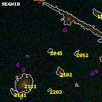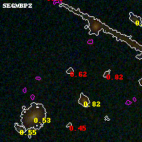 Black segments are analyzed here. Roll mouse over color images to view segments. Best viewed in a wide browser window (1200 pixels or more). Download SED & P(z) plots to view larger versions.