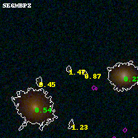 Black segments are analyzed here. Roll mouse over color images to view segments. Best viewed in a wide browser window (1200 pixels or more). Download SED & P(z) plots to view larger versions.