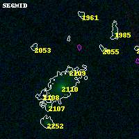 Black segments are analyzed here. Roll mouse over color images to view segments. Best viewed in a wide browser window (1200 pixels or more). Download SED & P(z) plots to view larger versions.