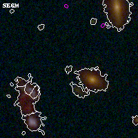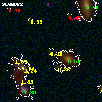 Black segments are analyzed here. Roll mouse over color images to view segments. Best viewed in a wide browser window (1200 pixels or more). Download SED & P(z) plots to view larger versions.