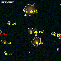 Black segments are analyzed here. Roll mouse over color images to view segments. Best viewed in a wide browser window (1200 pixels or more). Download SED & P(z) plots to view larger versions.