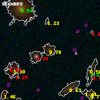 Black segments are analyzed here. Roll mouse over color images to view segments. Best viewed in a wide browser window (1200 pixels or more). Download SED & P(z) plots to view larger versions.