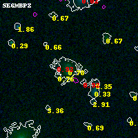 Black segments are analyzed here. Roll mouse over color images to view segments. Best viewed in a wide browser window (1200 pixels or more). Download SED & P(z) plots to view larger versions.