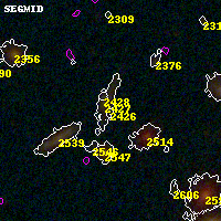 Black segments are analyzed here. Roll mouse over color images to view segments. Best viewed in a wide browser window (1200 pixels or more). Download SED & P(z) plots to view larger versions.