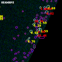 Black segments are analyzed here. Roll mouse over color images to view segments. Best viewed in a wide browser window (1200 pixels or more). Download SED & P(z) plots to view larger versions.