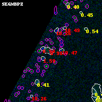 Black segments are analyzed here. Roll mouse over color images to view segments. Best viewed in a wide browser window (1200 pixels or more). Download SED & P(z) plots to view larger versions.