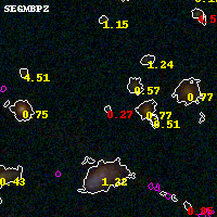 Black segments are analyzed here. Roll mouse over color images to view segments. Best viewed in a wide browser window (1200 pixels or more). Download SED & P(z) plots to view larger versions.