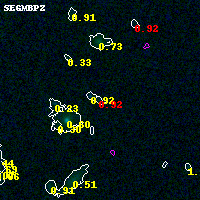 Black segments are analyzed here. Roll mouse over color images to view segments. Best viewed in a wide browser window (1200 pixels or more). Download SED & P(z) plots to view larger versions.