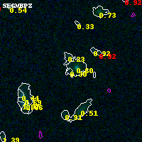 Black segments are analyzed here. Roll mouse over color images to view segments. Best viewed in a wide browser window (1200 pixels or more). Download SED & P(z) plots to view larger versions.