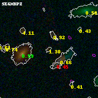 Black segments are analyzed here. Roll mouse over color images to view segments. Best viewed in a wide browser window (1200 pixels or more). Download SED & P(z) plots to view larger versions.