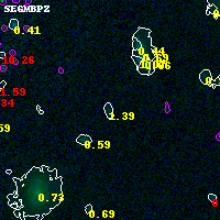 Black segments are analyzed here. Roll mouse over color images to view segments. Best viewed in a wide browser window (1200 pixels or more). Download SED & P(z) plots to view larger versions.