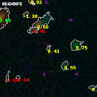 Black segments are analyzed here. Roll mouse over color images to view segments. Best viewed in a wide browser window (1200 pixels or more). Download SED & P(z) plots to view larger versions.