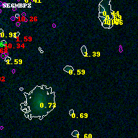 Black segments are analyzed here. Roll mouse over color images to view segments. Best viewed in a wide browser window (1200 pixels or more). Download SED & P(z) plots to view larger versions.
