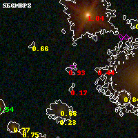 Black segments are analyzed here. Roll mouse over color images to view segments. Best viewed in a wide browser window (1200 pixels or more). Download SED & P(z) plots to view larger versions.