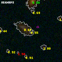 Black segments are analyzed here. Roll mouse over color images to view segments. Best viewed in a wide browser window (1200 pixels or more). Download SED & P(z) plots to view larger versions.
