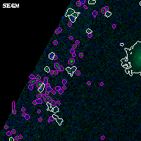 Black segments are analyzed here. Roll mouse over color images to view segments. Best viewed in a wide browser window (1200 pixels or more). Download SED & P(z) plots to view larger versions.