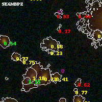 Black segments are analyzed here. Roll mouse over color images to view segments. Best viewed in a wide browser window (1200 pixels or more). Download SED & P(z) plots to view larger versions.