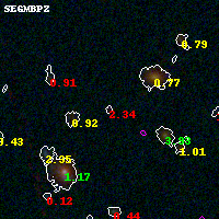 Black segments are analyzed here. Roll mouse over color images to view segments. Best viewed in a wide browser window (1200 pixels or more). Download SED & P(z) plots to view larger versions.