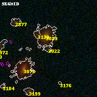 Black segments are analyzed here. Roll mouse over color images to view segments. Best viewed in a wide browser window (1200 pixels or more). Download SED & P(z) plots to view larger versions.