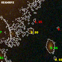 Black segments are analyzed here. Roll mouse over color images to view segments. Best viewed in a wide browser window (1200 pixels or more). Download SED & P(z) plots to view larger versions.