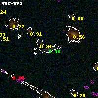 Black segments are analyzed here. Roll mouse over color images to view segments. Best viewed in a wide browser window (1200 pixels or more). Download SED & P(z) plots to view larger versions.