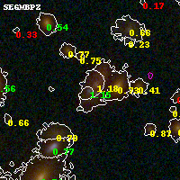 Black segments are analyzed here. Roll mouse over color images to view segments. Best viewed in a wide browser window (1200 pixels or more). Download SED & P(z) plots to view larger versions.