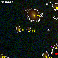 Black segments are analyzed here. Roll mouse over color images to view segments. Best viewed in a wide browser window (1200 pixels or more). Download SED & P(z) plots to view larger versions.