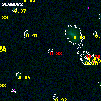 Black segments are analyzed here. Roll mouse over color images to view segments. Best viewed in a wide browser window (1200 pixels or more). Download SED & P(z) plots to view larger versions.