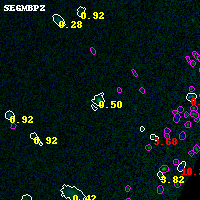 Black segments are analyzed here. Roll mouse over color images to view segments. Best viewed in a wide browser window (1200 pixels or more). Download SED & P(z) plots to view larger versions.