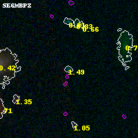 Black segments are analyzed here. Roll mouse over color images to view segments. Best viewed in a wide browser window (1200 pixels or more). Download SED & P(z) plots to view larger versions.