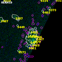 Black segments are analyzed here. Roll mouse over color images to view segments. Best viewed in a wide browser window (1200 pixels or more). Download SED & P(z) plots to view larger versions.